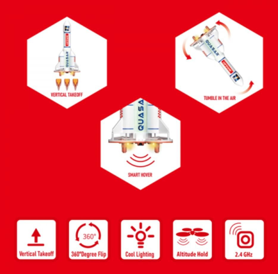 QUASAR raketový dron 2.4 GHz je unikátní kvadrokoptéra s autostratem, autopřistáním, barometrem, čídly proti nárazu, LED osvětlení Více informací