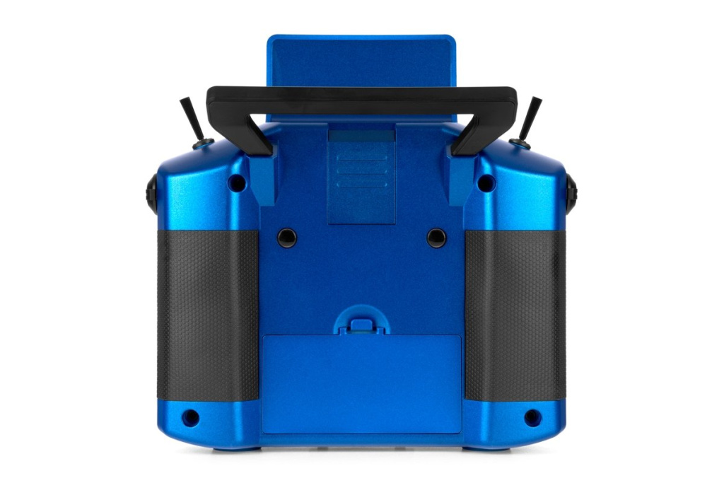 Tělo vysílače je robustní a dokonale padnoucí do ruky. Pogumované gripy na bocích a zadní straně vysílače poskytují pevný pohodlný a jistý úchop. Odtud bez obtíží dosáhnete na všechny ovladače. Gimbaly se nachází těsně u okrajů vysílače. Samozřejmě nechybí ani možnost nastavení síly neutralizačních pružin a aretace. Pro změnu módu tak stačí v nabídce nastavení zvolit požadovaný mód, a během několika okamžiků nastavit aretaci páky plynu.